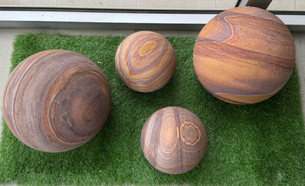 REFERENCE : SPHEREFRAINBO…. DESCRIPTIF : Boules décoratives en grès naturel RAINBOW polies et adoucies aux couleurs chaudes et veinées. Origine Espagne